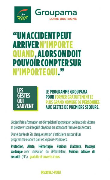 GROUPAMA propose gratuitement aux habitants de la commune des sessions de formations aux premiers secours.